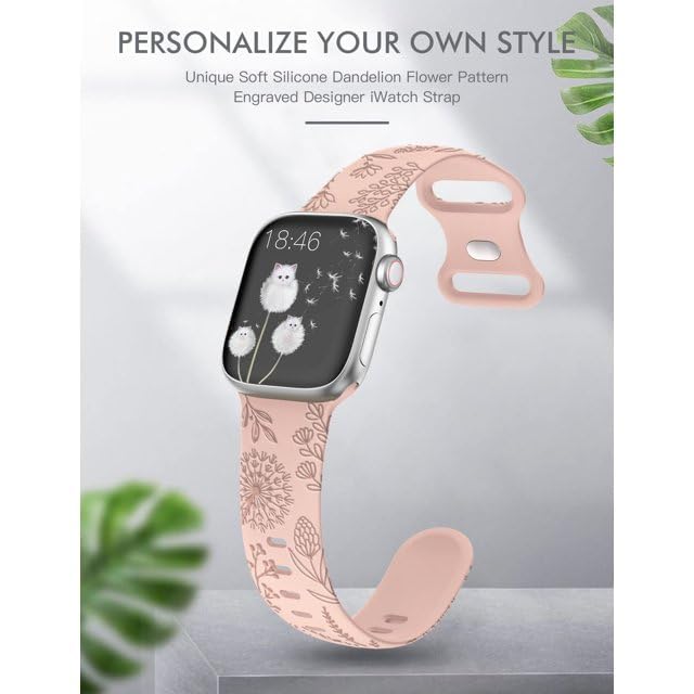(Unique Dandelion Flower Pattern Engraved Silicon Band) Compatible Models: Compatible with Apple Watch 41mm 40mm 38mm Series SE/8/7/6/5/4/3/2/1 all models.