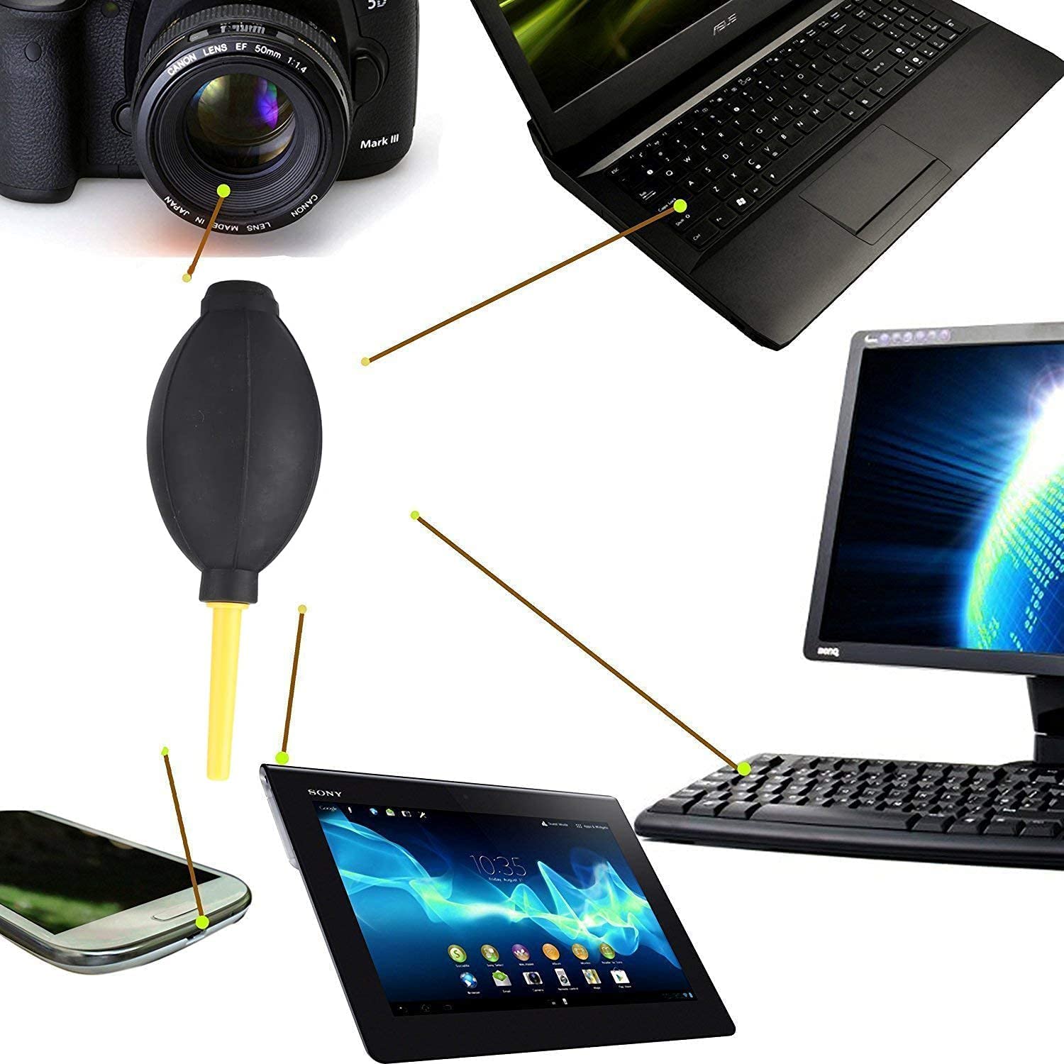 Dust Blower Rubber Air Pump Cleaner Vacuum Hand Blower Compatible for Keyboard, DSLR Camera, Lens, Watch, Cell Phone,Sensitive Electronics, Computer, Laptop, PC, CPU, Motherboard and Screen