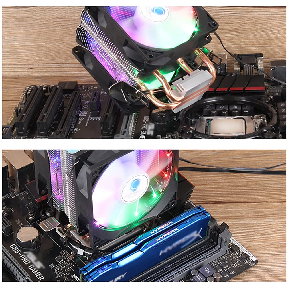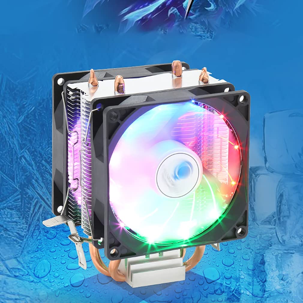 PC Cooler CPU Fan LED CPU Cooler Fan 4-Pin High Performance Cooling Fan with 2 Heatpipes Cooling Fan Motherboard Sync Quiet Fan