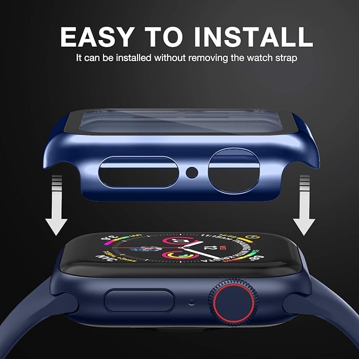 Compatible with apple watch series 7, 8 , 9 and only for size 41mm. Apple watch case equipped with tempered glass screen protector is tailored made for apple watch series 7 and 8. Material:Durable square hard PC bumper & built-in tempered glass screen protector. All around protect your iWatch, against scratches and wear.