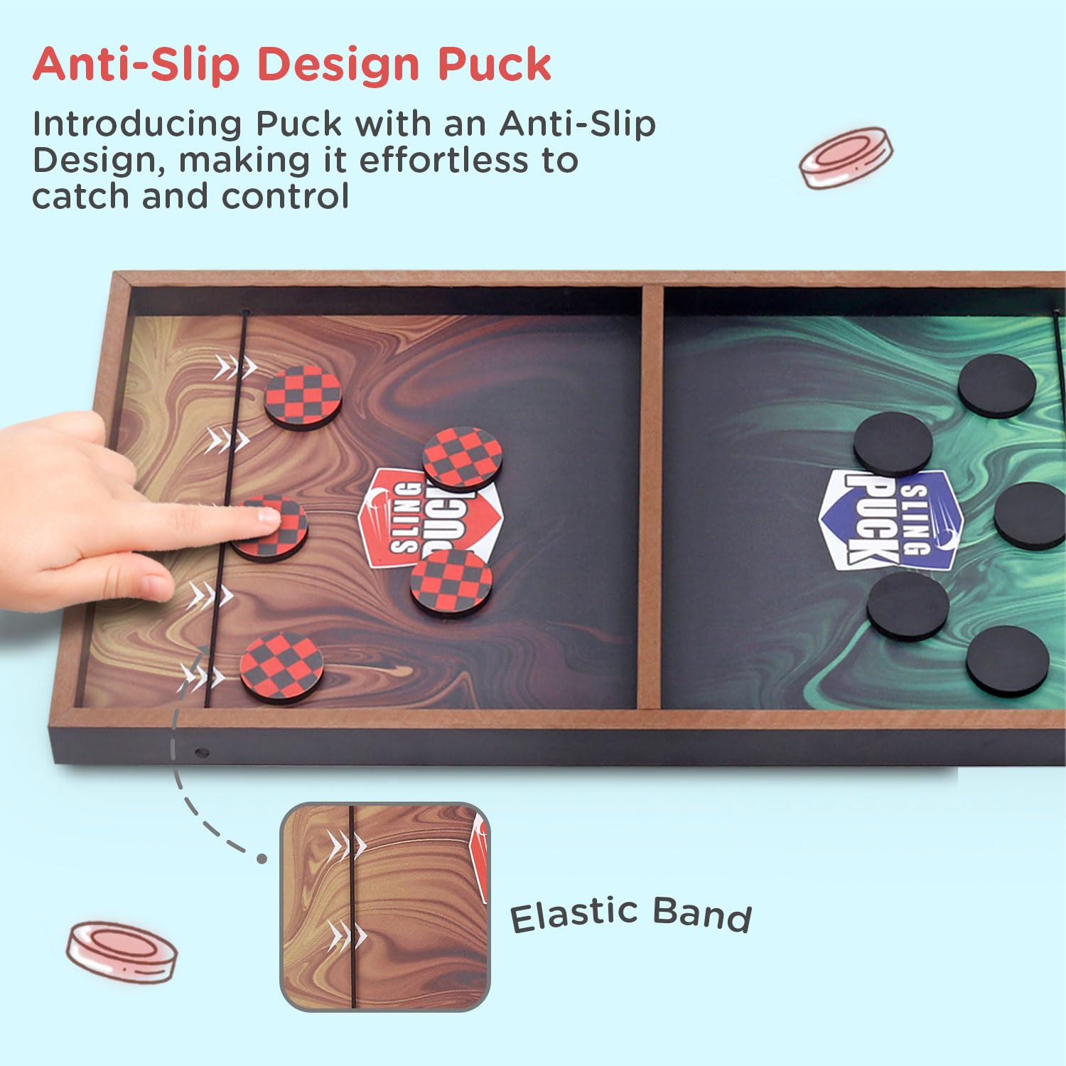 The fun never stops with this wooden sling puck game that is ideal for anyone who loves fast-paced games, both adults and children.