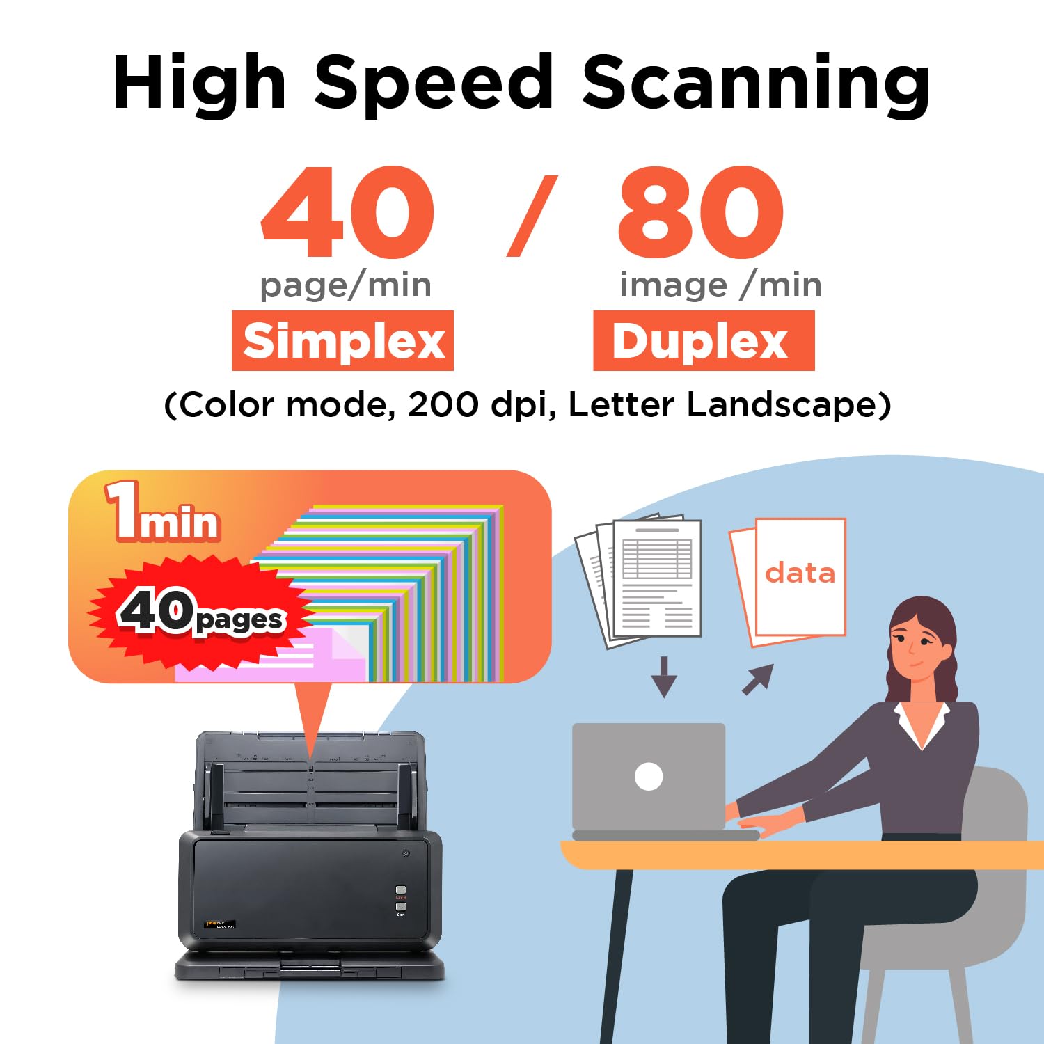 * scan speed – 40 pages per minute (Color mode, 200dpi, Letter size) , 30 pages per minute (Color mode, 300dpi, Letter size)