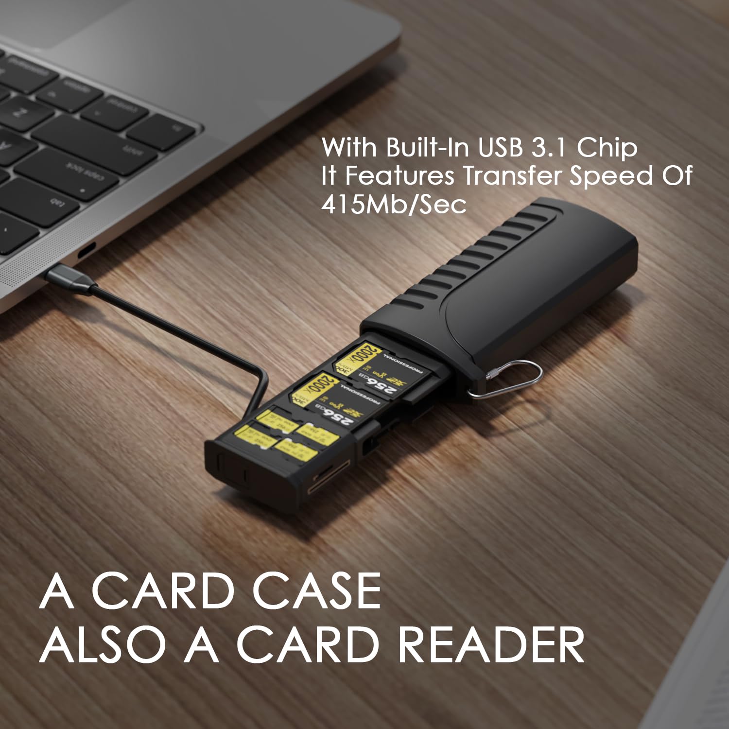 Portable & Compact: Lightweight and portable, this all-in-one memory card reader and case fits conveniently in your camera bag, backpack, or pocket, making it perfect for on-the-go use.