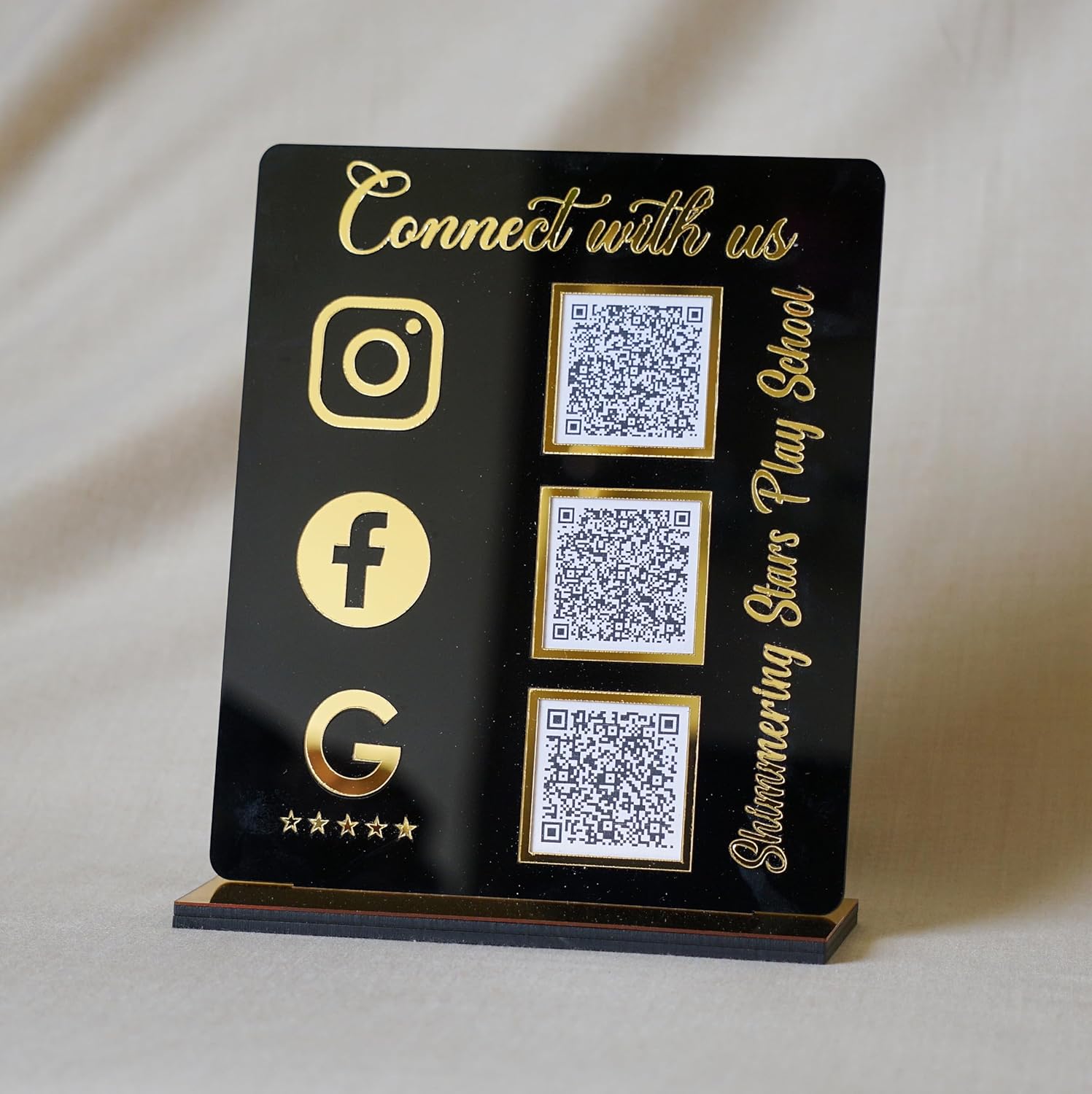 Customizable QR Codes: Personalize the stand with your unique brand or shop name, and choose from three QR code options to include your social media accounts, payment gateways, or any other relevant links.