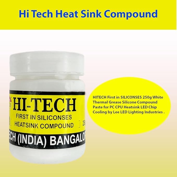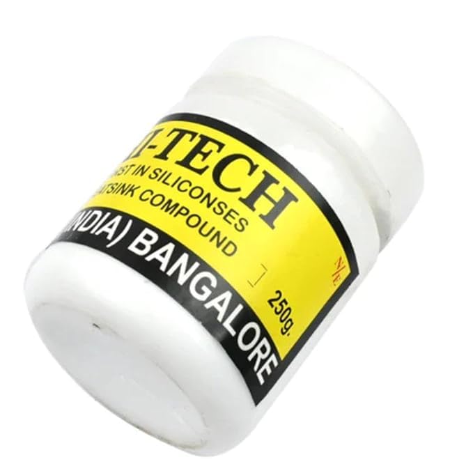 R3 250gm White Thermal Heat Sink Compounds are single component modified silicone system. This product finds versatile applications like mounting studs of transistors, diodes and silicone rectify to provide effective heat seal and to improve conductivity at heat sink junctions. It is used as an interface between heat generating components (heat sources) and heat Sinks. It is used to fill the air gaps between the (heat sources) and heat Sinks by applying a thin layer of thermal grease to the top of the microprocessor and the base of the heat sink. Heat sink paste absorb the heat produced by heat sources (high-power semiconductor devices) in all electronic products. Heat Paste is necessary to maintain heat so that all components work smoothly. The main role of Thermal grease is to eliminate air gaps or spaces (which act as thermal insulator) from the interface area so as to maximise heat transfer. Thermal grease is an example of a Thermal interface material.