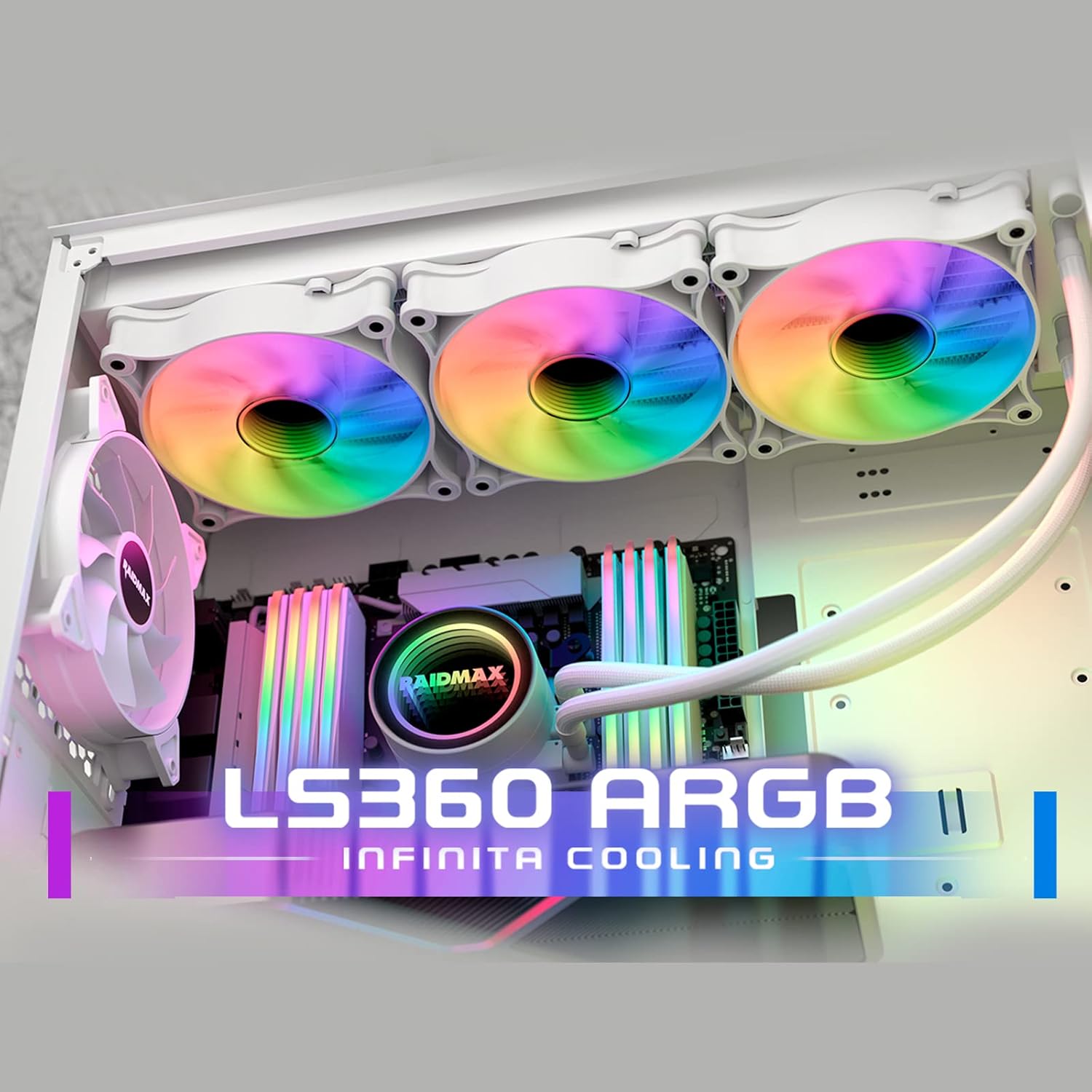 Raidmax Infinita LS360 AIO Water Cooling System, 360mm Gaming PC CPU Water Cooler with 3 ARGB/RGB PWM Light Fans, Compatible with Intel i5, i7, i9 and AMD ryzen CPU Socket (White)