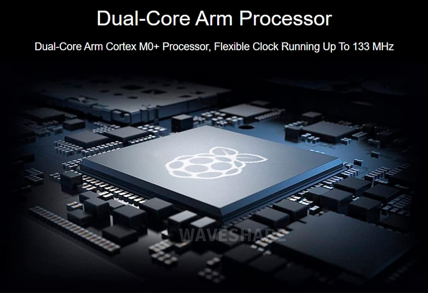 Dual-core Arm Cortex M0+ processor, flexible clock running up to 133 MHz