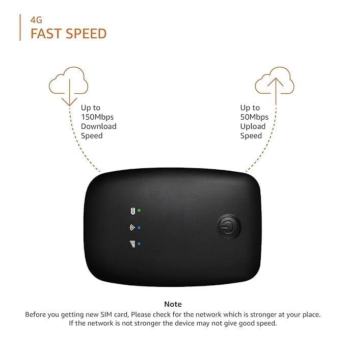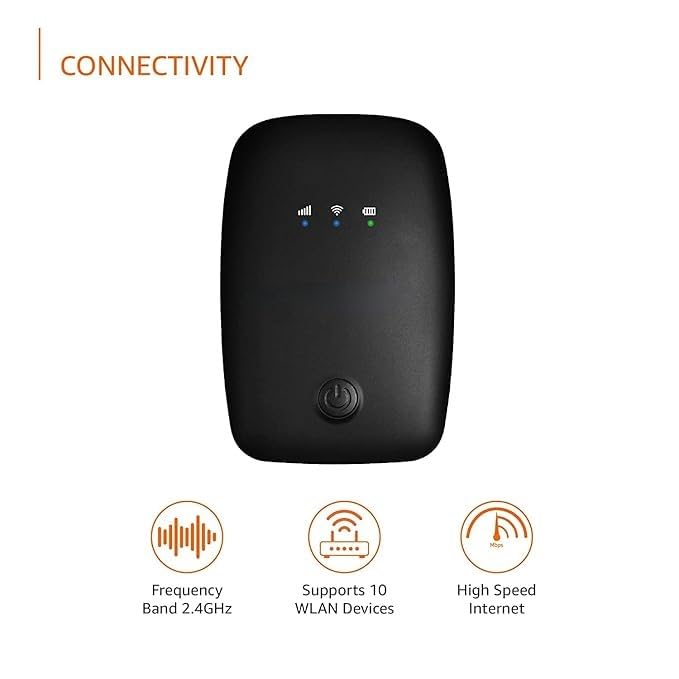 (Refurbished) AB22A075001 4G LTE Wireless Dongle with All SIM Network Support | Plug & Play Data Card Stick with up to 150Mbps WiFi Hotspot | 2100mAh Rechargeable Battery| SIM Adapter Included (Black)
