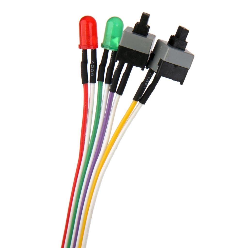 PC ATX Power Supply Reset 2 Switch Cable with 2 LED Lights
