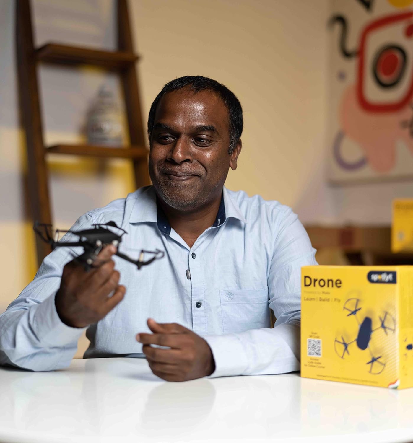 Spotlyt Academy offers you an online course along with the Drone Building Kit. Bernard and Sohan fly you on an exciting journey through the world of drones and aerodynamics in this online drone building course. The Drone Building course which comes with an exclusive kit, will be online and will provide you with a deeper understanding of the basics of aerodynamics, the origin and application of drones, basic principles around how a drone flies, designing and creating your own flying drone, learning how to fly your drone, and understanding how drone programming works.