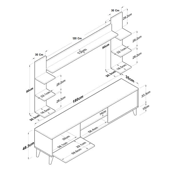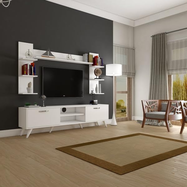This versatile TV stand with shelves is the perfect addition to any living space, from the living room and bedroom to the dining room, kitchen, bathroom, office, den, guestroom, or kids’ room. Designed to be wall-mounted, this entertainment center offers a sleek and space-saving solution for organizing and displaying your television, media components, and decorative items. Featuring multiple shelves, it provides ample storage space for your electronics, books, and other essentials. Crafted with durable materials, this TV stand is built to withstand the demands of daily use while adding a touch of style to your home decor. Whether you’re looking to create a modern and minimalist aesthetic or complement an existing design scheme, this wall-mounted TV stand is a functional and stylish choice. Its versatility allows it to seamlessly blend into any room, making it a practical and visually appealing addition to your living space.