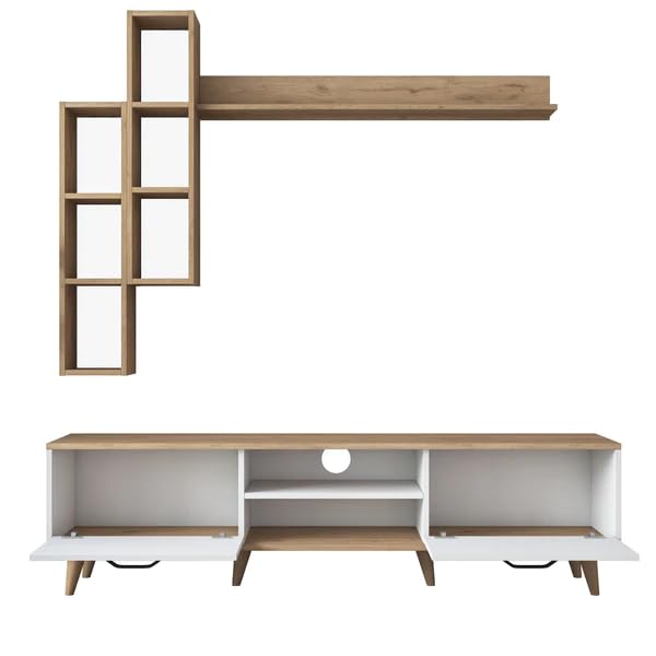 Spyder Craft Matte Finish M5 Engineered Wood TV Entertainment Unit Wall Mounted with Shelf for Living Room, Bedroom, Color: Oak & White || Assembly-DIY (Do-It-Yourself)
