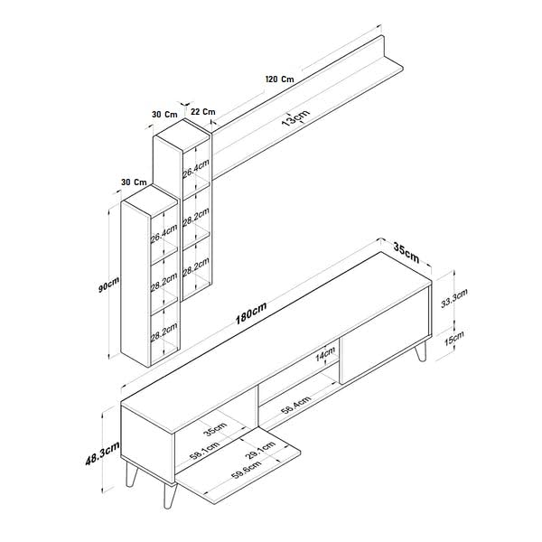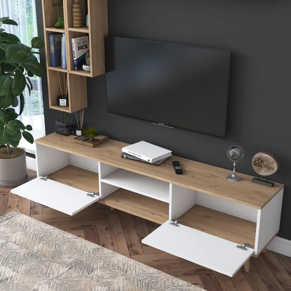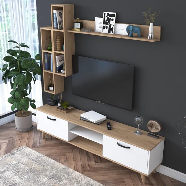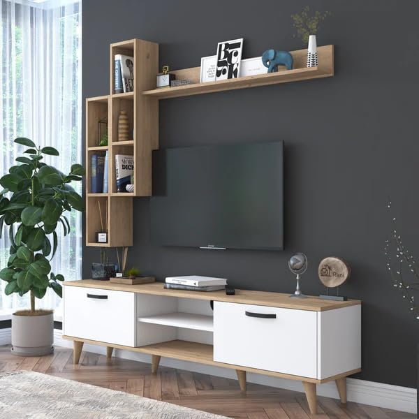 This versatile TV stand with shelves is the perfect addition to any living space, from the living room and bedroom to the dining room, kitchen, bathroom, office, den, guestroom, or kids’ room. Designed to be wall-mounted, this entertainment center offers a sleek and space-saving solution for organizing and displaying your television, media components, and decorative items. Featuring multiple shelves, it provides ample storage space for your electronics, books, and other essentials. Crafted with durable materials, this TV stand is built to withstand the demands of daily use while adding a touch of style to your home decor. Whether you’re looking to create a modern and minimalist aesthetic or complement an existing design scheme, this wall-mounted TV stand is a functional and stylish choice. Its versatility allows it to seamlessly blend into any room, making it a practical and visually appealing addition to your living space.