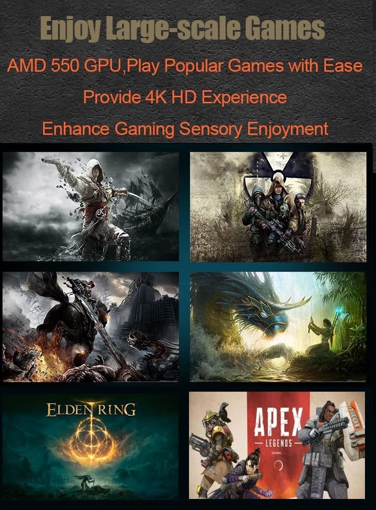 Enjoy Large-scale Games: AMD 550 GPU, play popular Games with Ease Provide 4K HD Experience, enhance gaming sensory enjoyment. Support 4K, wide field of view: DP+DVI+HDMI Output, Resolution Support 3840×2160