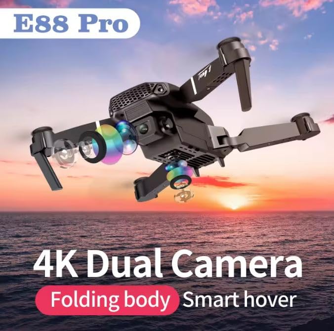 SWITUNZA-Drone-with-4K-Camera-WiFi-FPV-1080P-HD-Dual-Foldable-RC-Drone-Altitude-Hold-Headless-Mode-Visual-Positioning-Auto-Return-App-Control-Multi-Color (E88)