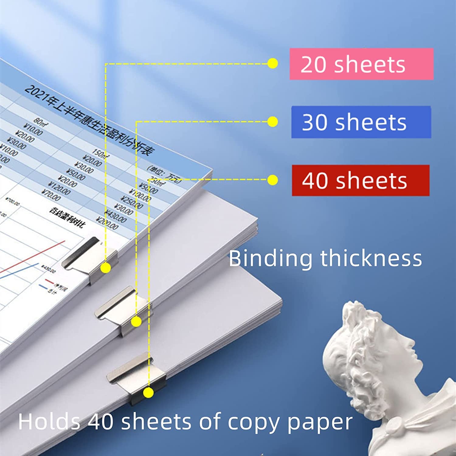 ?【Resuable Clips】These paper clips are resuable, you just need remove them then put in clip dispensers. It is more environmently friendly than normal binders and staplers and save money. The clip can staple 2-40 sheets of A4 paper thickness.