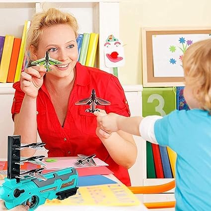 Kids enjoying with this toy both indoor and outdoor play, kids prefer to have outdoor competition who can be flying away, also battle shooting gun game. Airplane launcher gun is uniquely designed & latest toy with easy to launch aircraft function. (i) Install foam glider plane (ii) Push and pull launch gear (iii) Press gun trigger (iv) Aircraft will launch along the track quickly. Airplane Launcher Gun: Catapult plane flying toys come with auto-launcher shooting toy gun and 3pcs foam glider plan
