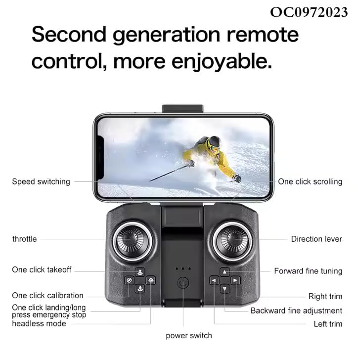 Advanced functions OR Selling points: Brushless motor, general machine, with optical flow positioning, wind-resistant and drop-resistant.Remote control battery: AA batteries*3 (brought by yourself)Operation method: remote control/APP controlFrequency: 2.4GHzBody size: (unfolded) 30*27*6CM (folded) 14*9*6CMCharging method: Universal USB interfaceBattery capacity: 3.7V 1800mAH modular batteryStandalone weight: 188g (including battery)Charging time: 90 minutesRemote control distance is about: 150 metersVideo resolution: HD dual cameraSpeed adjustment: slow/medium/fast