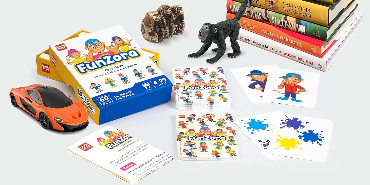 Fundora is the best card game to learn about colours and the fun of being crazy! It is a learning-based card game that combines concentration, focus, and senses with actions to enhance memory, imagination, and confidence. Players imitate the gesture of the chimp with the same colours as the colour card while calling out ‘Fundora’. The fun of being goofy is a bonus!