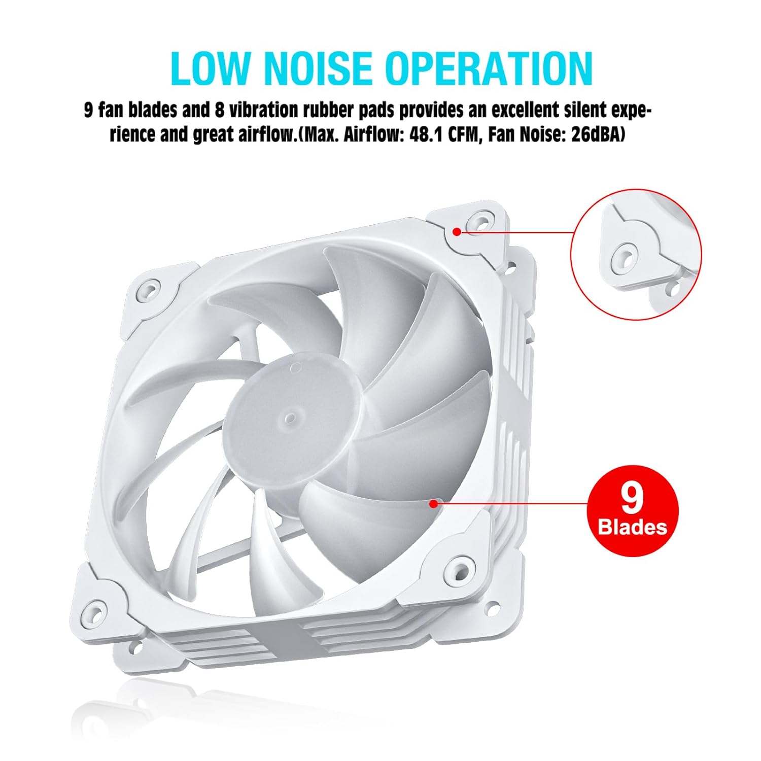 Sweet White Frame: High quality white fan blades and white frame make the overall look romantic. It perfectly matches with your computer case
