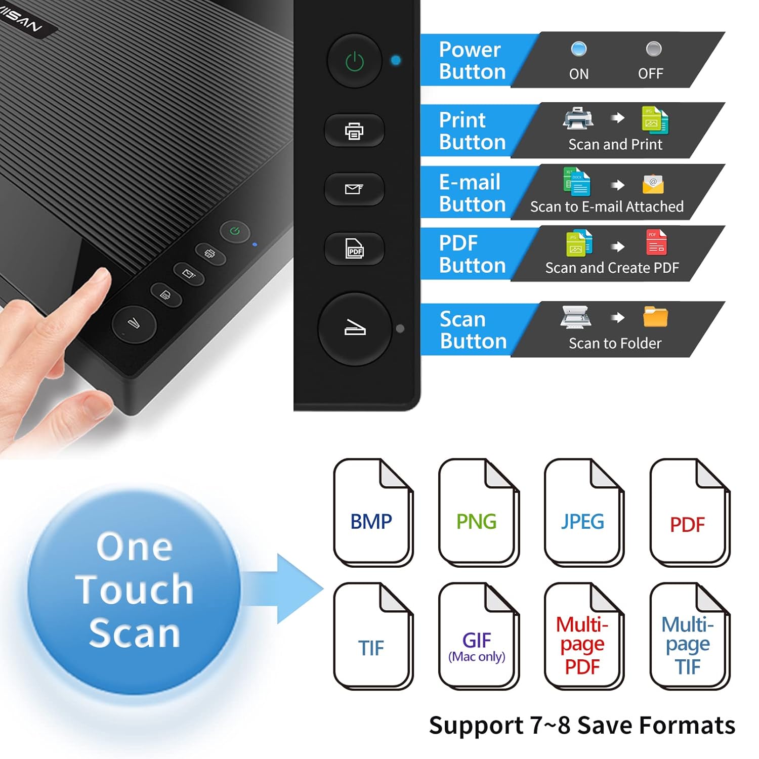 [1-year limited warranty] We provide a one-year warranty for Non-man-made damage. ※ Note: If white lines appear during scanning, you need to simply clean the scanner. Please kindly contact our customer service for how to clean it